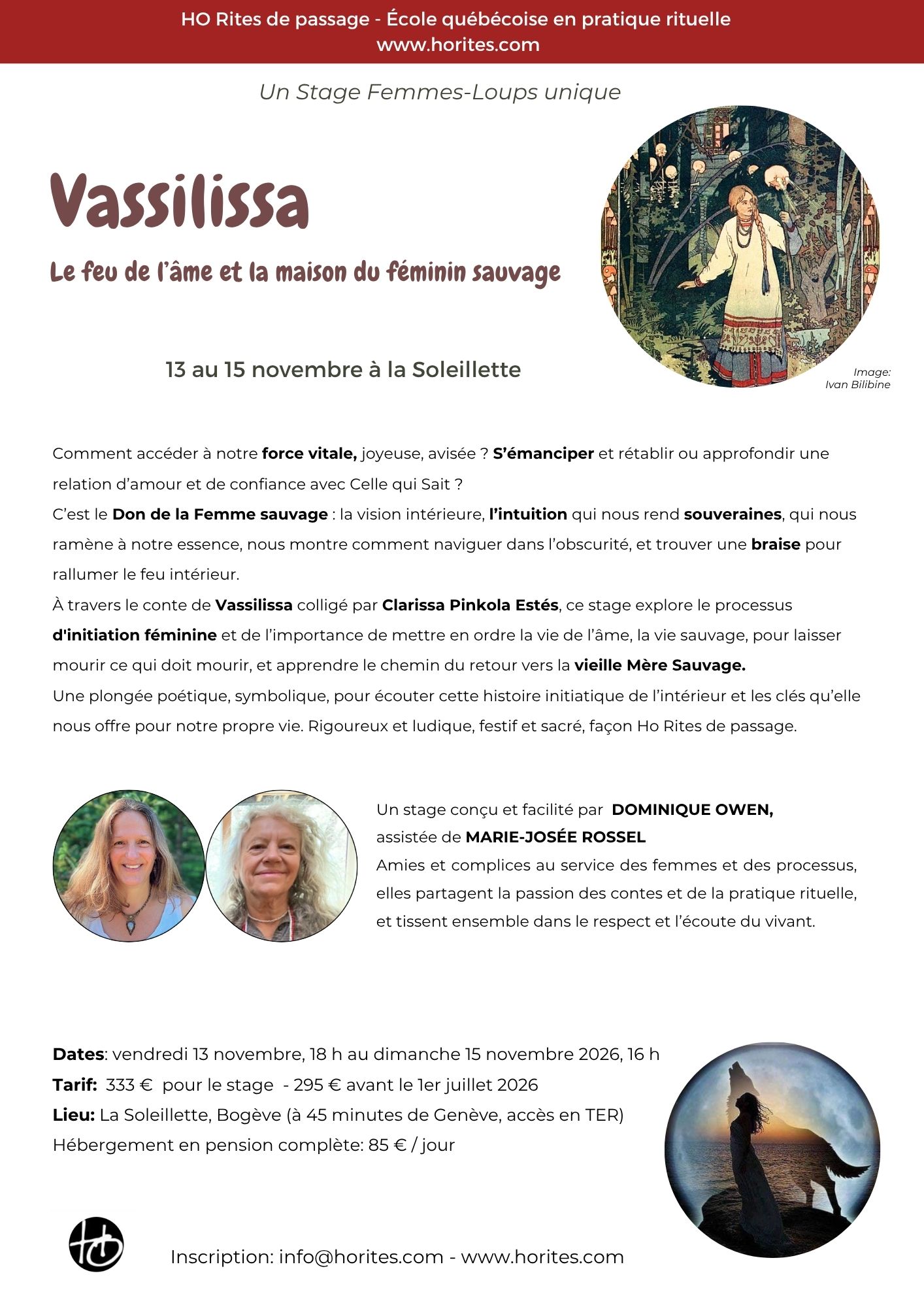 À travers le conte de Vassilissa colligé par Clarissa Pinkola Estés, ce stage explore le processus d’initiation féminine et de l’importance de mettre en ordre la vie de l’âme, la vie sauvage, pour laisser mourir ce qui doit mourir, et apprendre le chemin du retour vers la vieille Mère Sauvage.